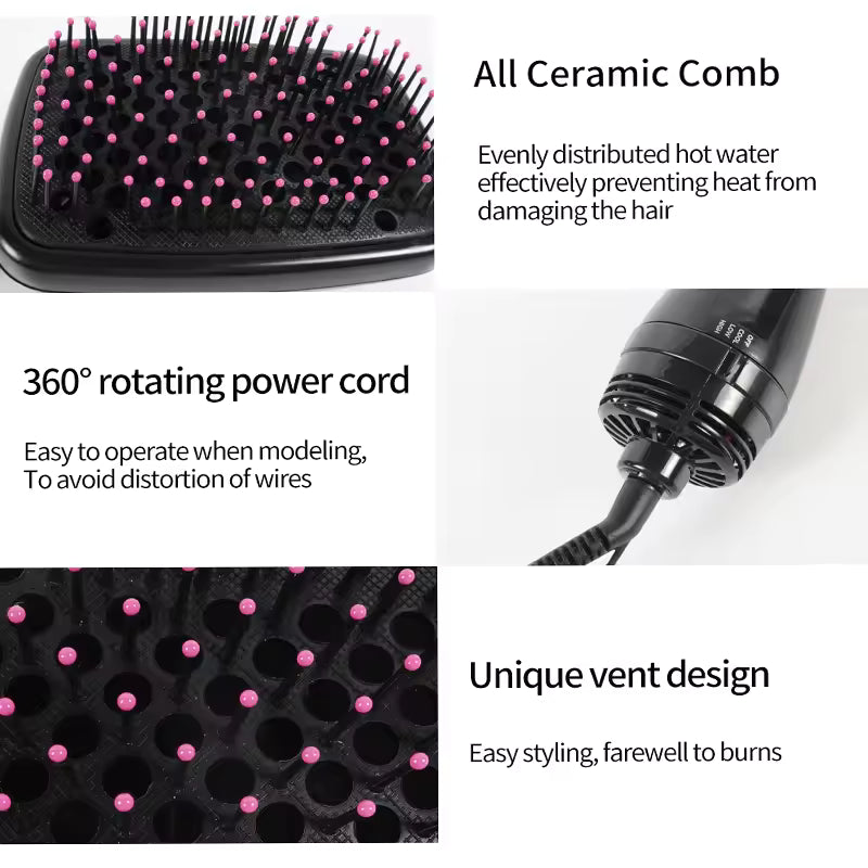 Lightweight, compact, and dual-voltage (100-240V), this hot air brush is perfect for home use, salons, and travel.